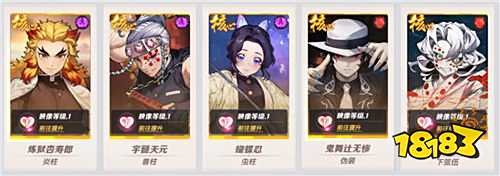 畢業期(70 級 +):煉獄杏壽郎?炎柱 + 宇髓天元?音柱 + 蝴蝶忍?蟲柱 + 鬼舞辻無慘?偽裝 + 累?下弦伍