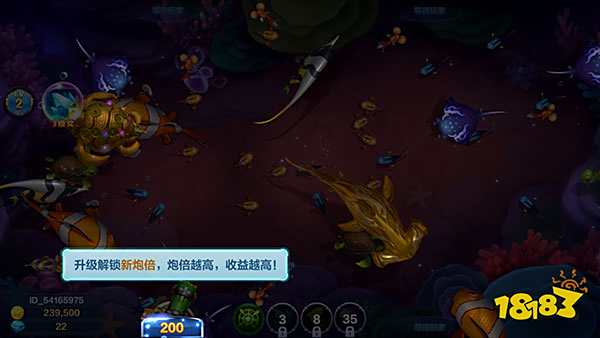 4、激光:當(dāng)玩家們使用一定次數(shù)的時(shí)候可以觸發(fā)激光炮,這時(shí)候就可以等待大魚(yú)或者金色的鯊魚(yú)游來(lái),然后直接發(fā)射激光來(lái)賺取大量的金幣。