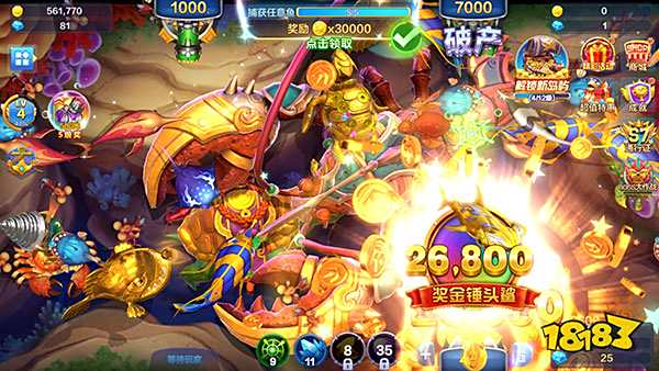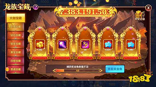 當(dāng)玩家捕獲的獎(jiǎng)金魚(yú)和特殊魚(yú)達(dá)到一定數(shù)量時(shí),就可以獲得開(kāi)啟寶藏的機(jī)會(huì),隨機(jī)獲得大量的金幣、鉆石或道具。