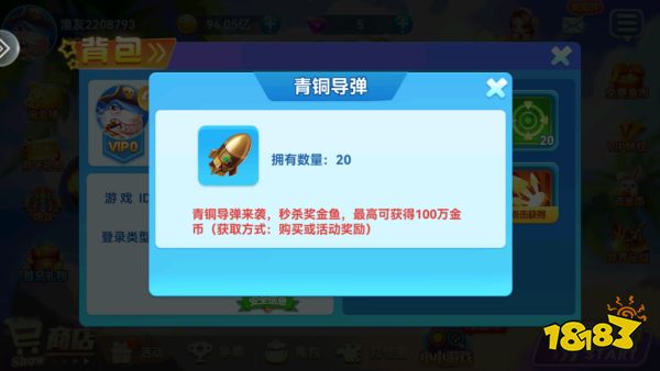 青銅導(dǎo)彈來襲,秒殺獎(jiǎng)金魚,最高可獲得100萬金幣(獲取方式:購(gòu)買或活動(dòng)獎(jiǎng)勵(lì))