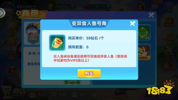在人魚峽谷魚潮后使用可召喚變異食人魚(需房間中玩家均為VIP3及以上)