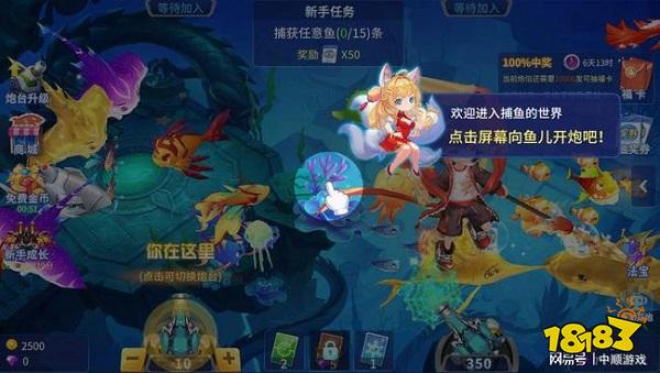 登錄游戲后,就會有一個漂亮的小狐妖帶您領略游戲教程,在這里小漁建議無論是捕魚新手還是捕魚老手都要閱讀一下新手教程,因為教程不會太影響游戲進度,還能讓您快速融入游戲當中。