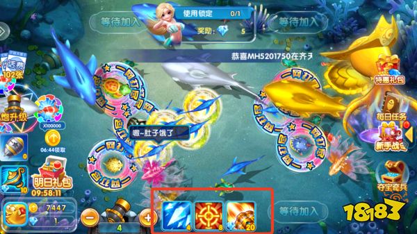 5、在漁場(chǎng)捕獲的話費(fèi)卷可以兌換彈頭、技能以及道具。