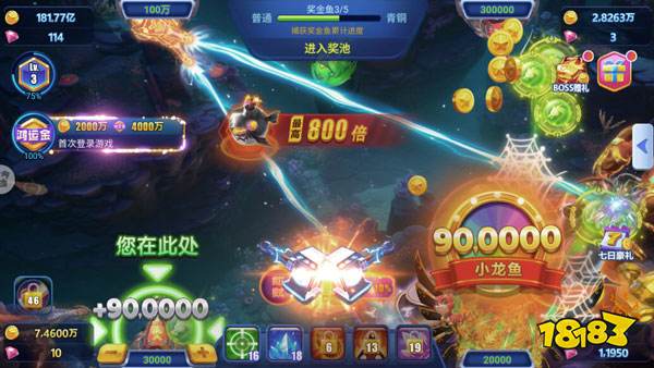 2. 萬倍炮+特殊武器:核彈、激光、鏈式電網,范圍秒殺高分BOSS