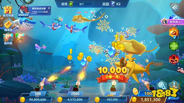 1. 經典千倍場:升級炮倍解鎖萬倍,擊殺金鯊、藍鯨掉落百萬金幣