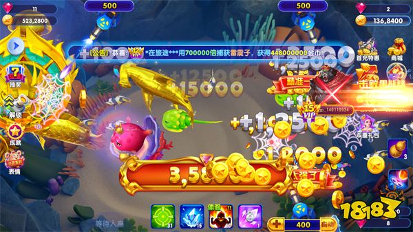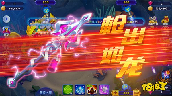 3、釋放出獎金魚后,要集中火力捕條獎金魚,不要三心二意的漫無目的地攻擊,一是浪費火力和金幣,二是獎金魚也隨時可能溜走,到時候會賠了夫人又折兵,得不償失了。
