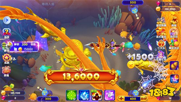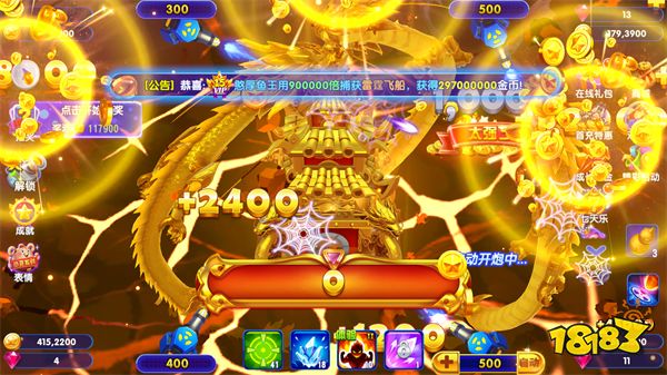 BOSS的體型較大,所以游動速度也相對小魚較慢一些,這也給了我們攻擊的時間,BOSS給予玩家的獎勵并不是固定不變的,而是根據炮臺的倍率的不同而給予不同等級的獎勵,所以當BOSS來襲時,我們盡量選擇符合自已等級的高倍率炮臺,這樣一方面可以更快擊殺掉BOSS,另一方面獎勵也會更加豐富。
