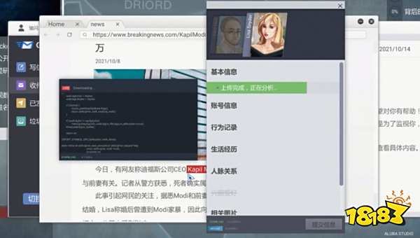 瀏覽器輸入第三個人的名字,在TB點擊常用名和HK號、Lisa和她母親;瀏覽器輸入第四人名字,提取碼為他的HK號,點擊錄音里有兩個信息收集。第二個推理步驟為:騷擾—兩個都是—面臨破產。點擊偽裝和女主人對話步驟為兩次恐嚇和詢問,點擊4次婚姻、訂制服務、Antony,然后和婚戀網打電話,結束后點擊對方說的最后一句話得到網址,接著入侵服務器,輸入網址,動態碼隨機的,輸入就行,點擊第一個文檔收集后退出。