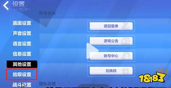 2、進(jìn)入到【設(shè)置】頁(yè)面后,在里面的左側(cè),然后選擇【拾取設(shè)置】。