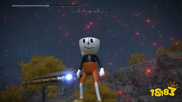 ??大樹守衛套裝??:金色鎧甲變為茶杯頭標志性的藍白條紋服裝,頭盔轉化為茶杯造型,盾牌替換為糖塊紋理