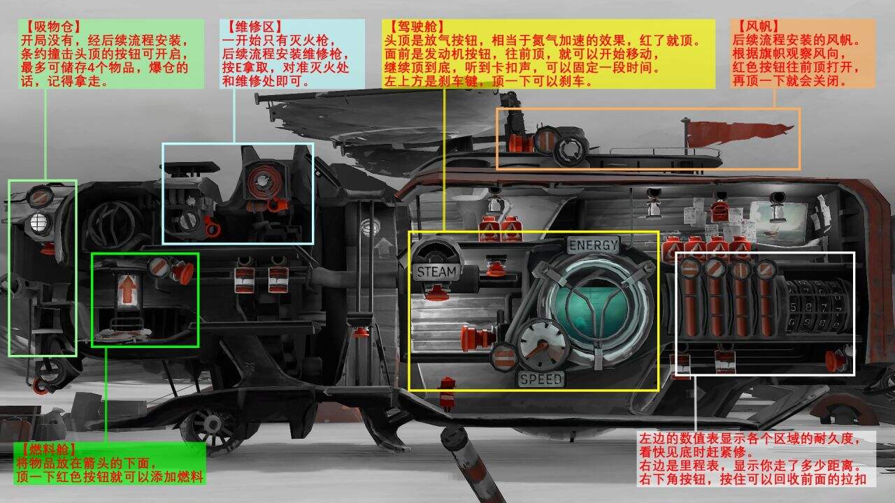 將開局的紅色郵箱帶到終點,建議拿到后直接放到臥室掛起來,以防當燃料給燒了,且最后一章中,載具會斷成兩截,后半部分的物品取不出來。