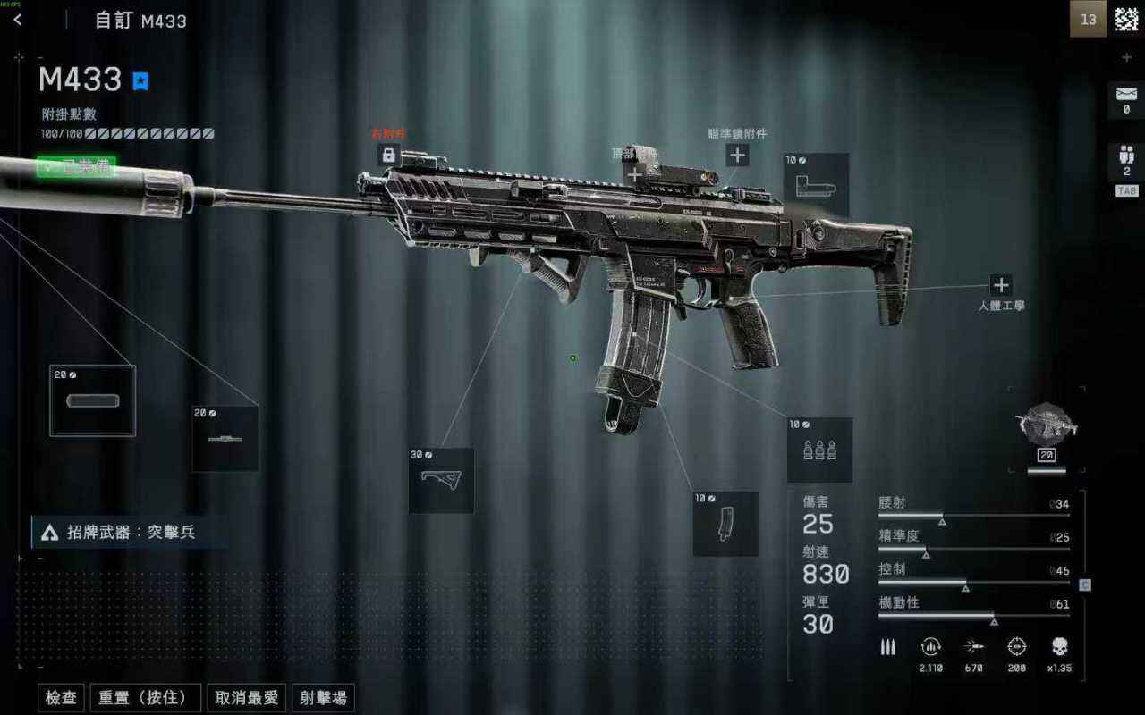 消音器可以讓你在繞后和單走時具有更強的隱蔽性,轉角握把與槍管用于控制433偏右上的后坐力,大幅提升武器的開鏡操縱性,30發快速彈匣保證了武器的持續作戰能力,減少因為換彈被抓timing的可能性