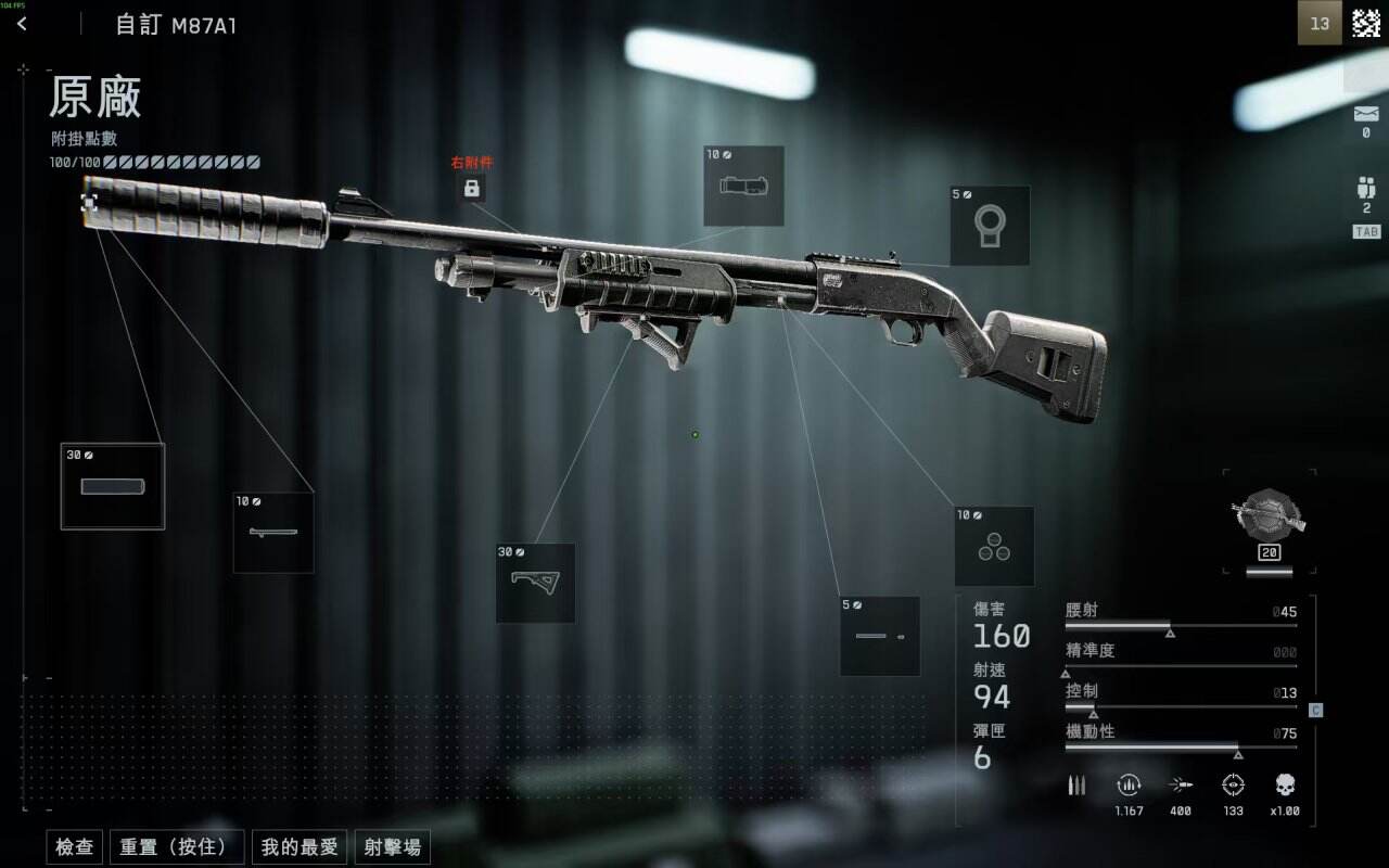 消音器可以讓你在單走和繞后時降低被發現的概率,霰彈槍唯一的缺點就是因為射速的關系,正面一打多很容易被反殺,消音器可以一定程度規避這個致命缺陷,轉角握把大幅度降低武器后坐力,降低轉火難度,增加你一打多存活的概率,紅激光減小連射散布和初始散布,增加擊殺效率和武器準度,彈倉5發7發換著帶,二者都可以,前者適合開鏡,后者適合腰射