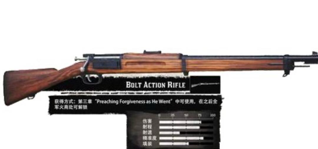 拉栓式步槍:完成第三章【布施原諒之人】途中可以獲得,之后也可以在武器商人處獲得。