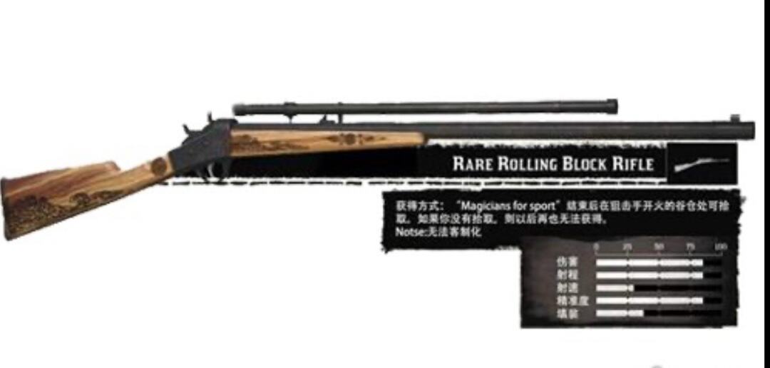 稀有滾輪閉鎖式步槍:在第三章【賞玩魔術師】任務中,谷倉中會有狙擊手攻擊亞瑟,殺死狙擊手他會掉落這把槍(錯過就不會再獲得!)