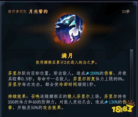 娜琪亞是正式版中的新角色,需要擊殺20次森林惡魔解鎖。也是游戲里唯一一個召喚角色,可以召喚狗/狼寵物替她作戰。所以這個流派只需要起始技能帶上小狼:滿月