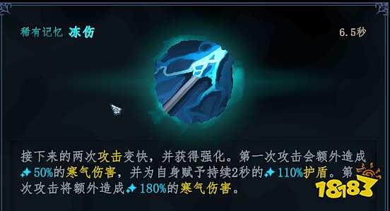 凍傷可以加快你的普通攻擊并疊盾,安裝余勢后,凍傷的CD會因加強后的普攻進一步減少,升級到后期幾乎可以無CD釋放。配合群星匯聚清圖效率一流,彈射起來爽就完事了