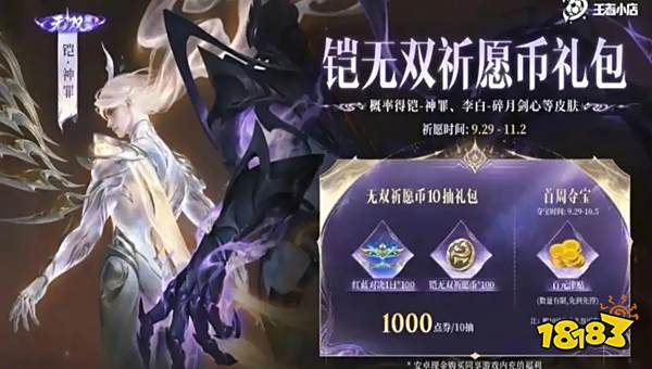 兌換門檻:需累計 998 無雙積分兌換皮膚,單抽 10 點券(首抽特惠 10 點券得 10 幣),10 連抽 100 點券(含 10 幣);?