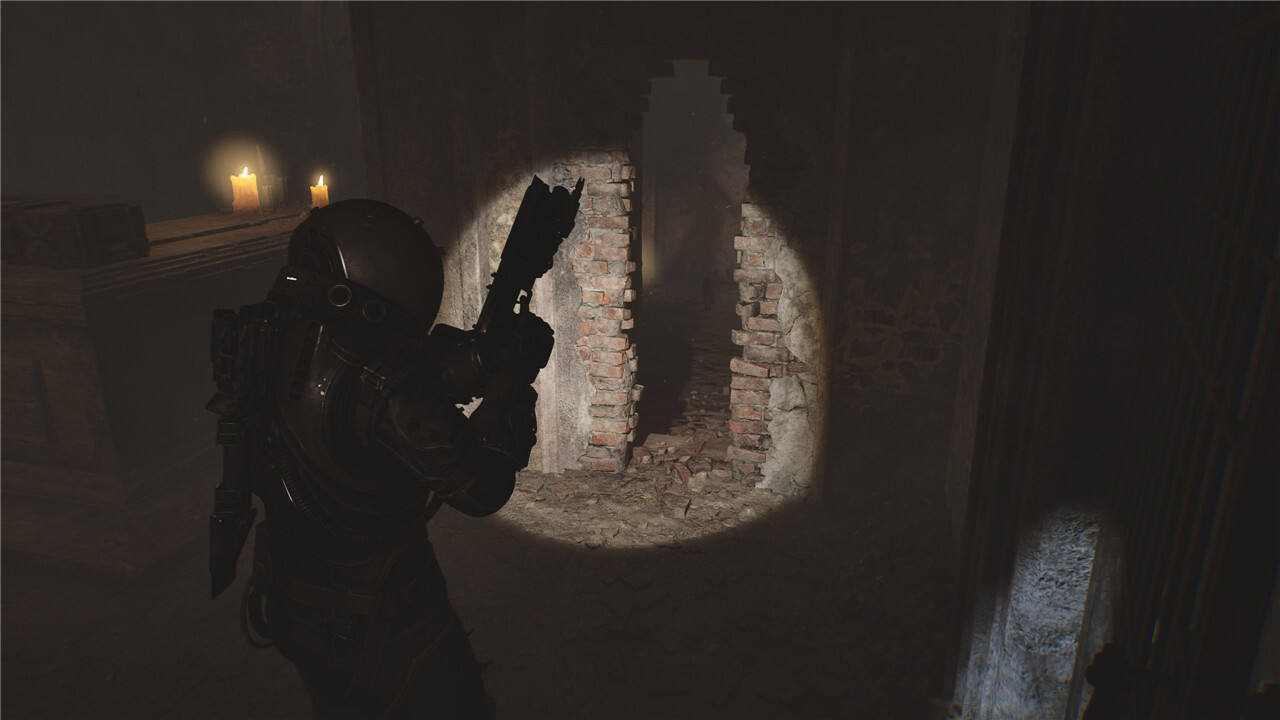 使用墓地鑰匙進(jìn)入墓地后,直走到盡頭,用切割機(jī)開門,右手邊墻縫里(會(huì)獲得生銹的鑰匙)