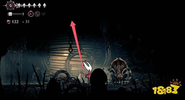 圖九:獲取二段跳,需要從監牢的車站出發,要進行跳跳樂(無盡模式)后獲取,在此溫馨提醒,如果不想在臨死前退出重進,身上的錢掉光,一定要保證你身上能有捏出90念珠的念珠串,不要像我一樣,到跳跳樂中途沒錢開椅子跳半天白跳,如果你能一次通過,當我沒說(冰抗是和二段跳一起給你的,不是打boss給的,有寒冷buff就是讓你在跳跳樂折磨)
