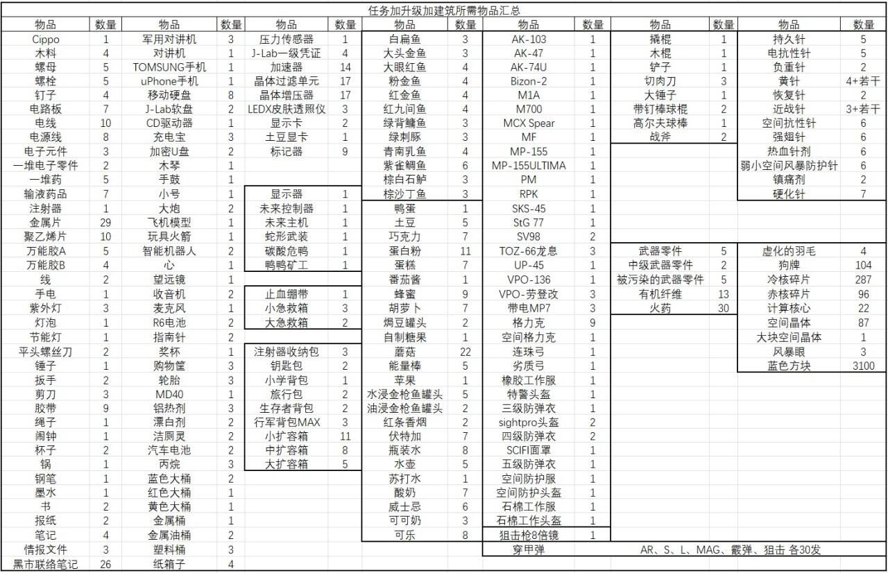 逃離鴨科夫正式版任務(wù)及建筑升級(jí)所需物品一覽 逃離鴨科夫任務(wù)需求物品匯總攻略分享