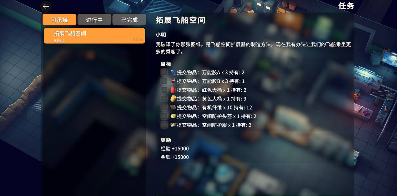 然后對著電腦互動我們就會獲得飛船擴展器的圖紙,回到藏身處和小明對話接到拓展飛船空間這個任務(需要的材料還是挺多的)