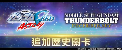 「歷史關卡」已于10月16日正式實裝,玩家可在其中重溫系列過往登場的故事事件。首波內容以《機動戰士鋼彈SEED ASTRAY》與《機動戰士鋼彈 雷霆宙域DECEMBER SKY》兩部作品打頭陣,讓玩家再次體驗經典劇情與戰斗場面,歡迎所有指揮官前往挑戰。