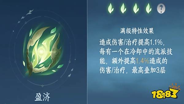 【盈濟(jì)】:算是新版本的 “黑馬”!以前因?yàn)楣潭ㄖ凳找娴膯?wèn)題沒那么突出,現(xiàn)在隨著面板變高,固定值收益降了,它的優(yōu)勢(shì)就顯出來(lái)了,直接一躍沖到前三。哪怕吃不到滿額收益,治療端的收益也能穩(wěn)定在 4% 以上,碾壓不少稀有內(nèi)功,泛用性特別強(qiáng)。
