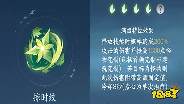 【掠時(shí)紋】:光看面板數(shù)值還挺亮眼,但實(shí)際測(cè)試下來(lái)有點(diǎn) “虛”。滿級(jí) 20 級(jí)也才增加 480 點(diǎn)治療強(qiáng)度,而且 8 秒才觸發(fā)一次的特效,治療倍率也只有 120%,跟上個(gè)賽年的【攬狂風(fēng)】比起來(lái)差遠(yuǎn)了,性價(jià)比不算高。