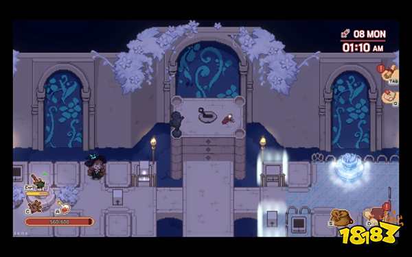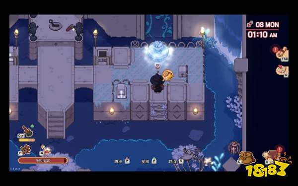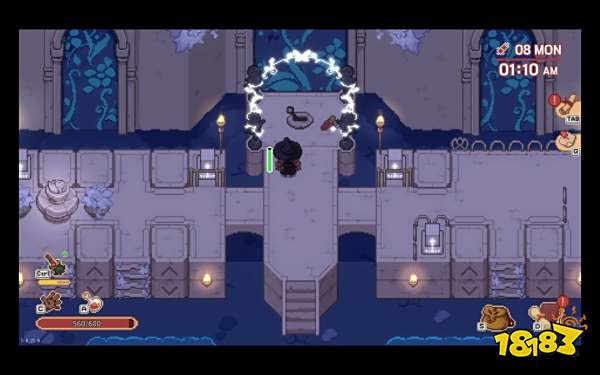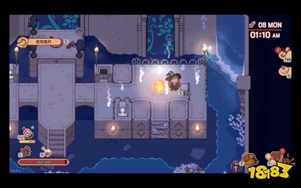 右側的第一塊同樣沒什么難度,第二塊的話在冰塊上怎么滑都是無解,此時直接使用【蒸汽藥水】投向冰雕,冰層融化后就是普通的石板地了,怎么走都行。