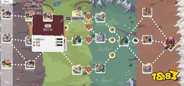 死亡日狂殺末路中每次游戲都可以在三條路線上選擇一條路線進行游玩,每條路線都有不同的地圖,這些地圖都有著各自的大小、物資、汽油,這三個屬性分別代表了這張地圖的物資儲量,下面就為大家介紹游戲中地圖的選擇以及地圖的介紹一覽。