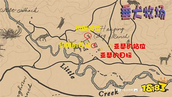 來到草莓鎮(zhèn)上方的垂犬牧場。亞瑟與約翰的敵人分布不同,可以參考下圖兩處標(biāo)記的站位,分別對應(yīng)亞瑟與約翰。我使用的是約翰,就用約翰站位來講解,到達(dá)約翰站位時,前方剛好有一名背對著我們的敵人,拿出弓箭開死眼爆頭擊殺,馬上往任意方向離開此地,被發(fā)現(xiàn)沒事,地圖紅色消失后返回站位點(diǎn)復(fù)讀機(jī)操作9次即可完成。