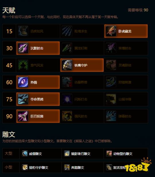 玩家第一次進(jìn)入游戲后,所有職業(yè)天賦和雕文都會被重置,而且整個UI都已經(jīng)換成15、30、45、60、75與90級的模式,每到特定的等級就有3個天賦選擇,每個天賦都有不同作用,那么問題來了,有沒有一套萬金油的天賦方便升級和過渡五人本的呢?答案是有的,不想花時間去研究的小伙伴,不妨先照著下面來點(diǎn):