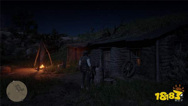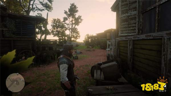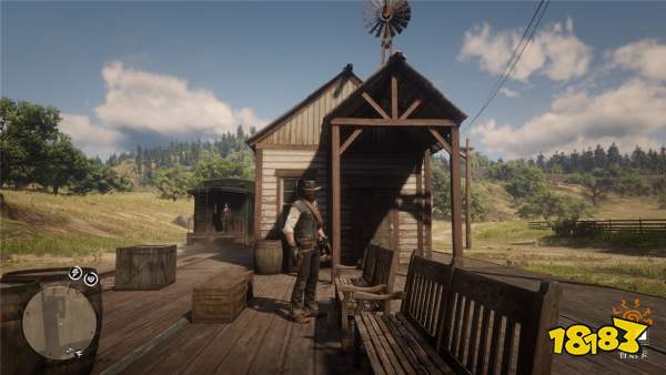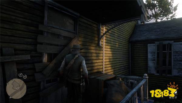 翡翠牧場(chǎng)左方的一棟房屋前,木桶上可收集卡片。