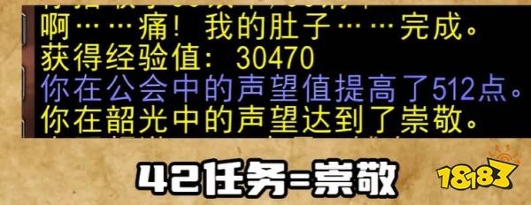 在戰袍的加持下,完成一個任務可獲得512點公會聲望,只需完成42個任務就可達到崇敬的級別。