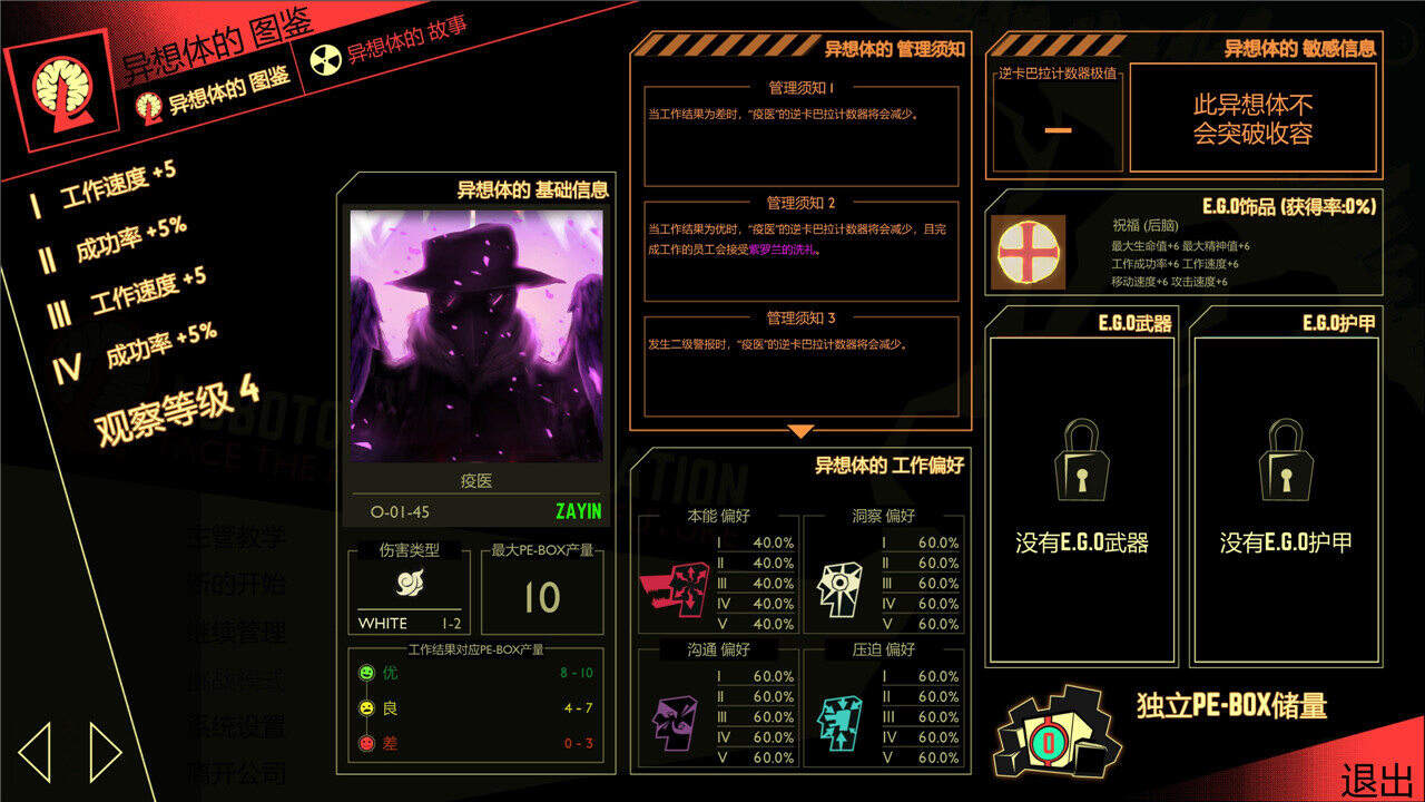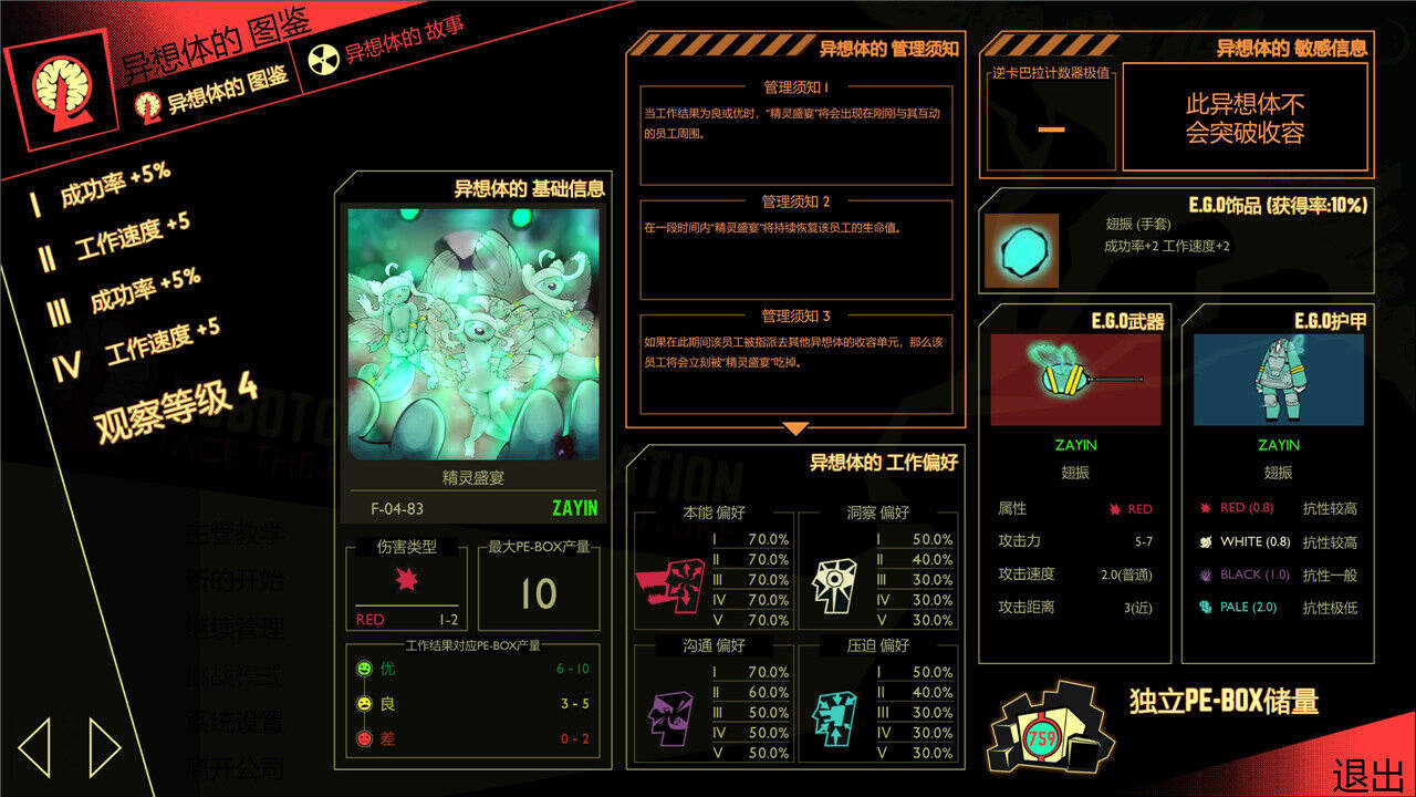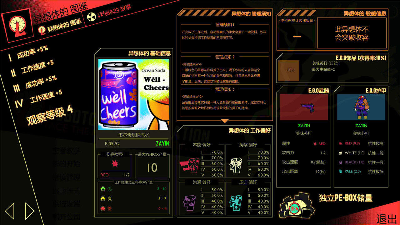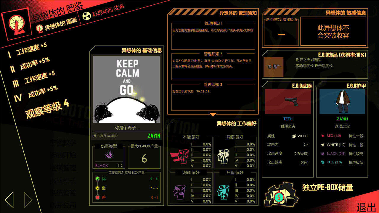 Ⅵ.設施內每有一個異想體被成功鎮壓,“深黯“軍團””的逆卡巴拉計數器就會增加。