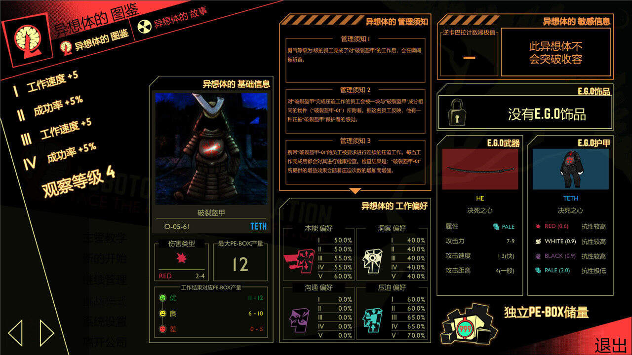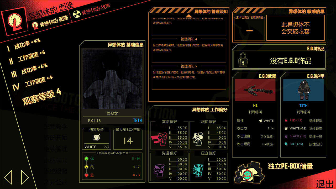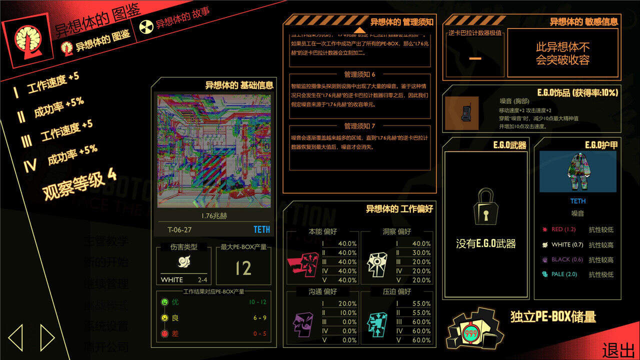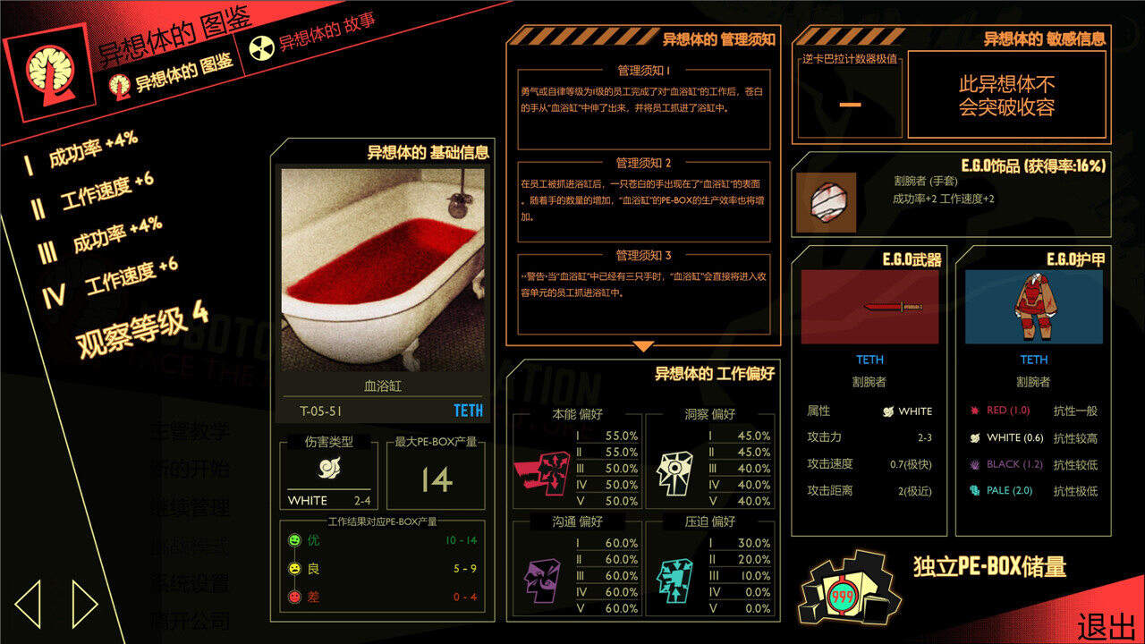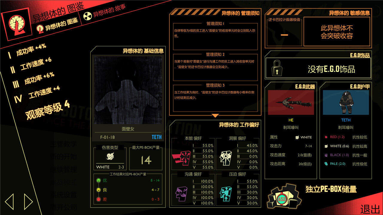 6、當“櫻下墓”吸收了一名員工之后,如果指派一名員工開始工作,那么“櫻下墓”的逆卡巴拉計數器將會恢復到最大值。同時,設施內所有的員工都會恢復生命值和精神值
