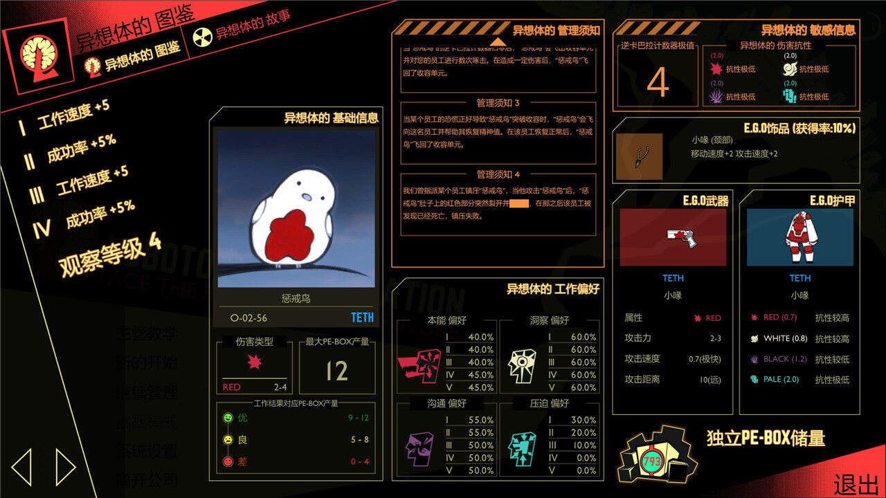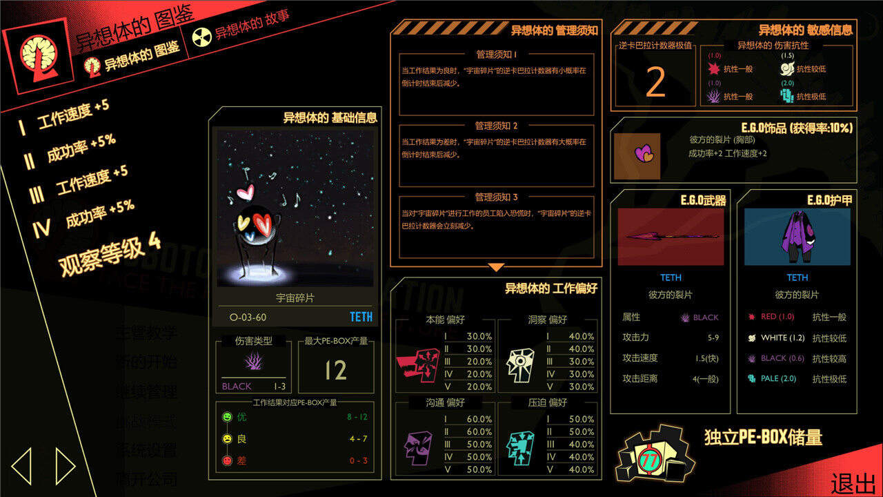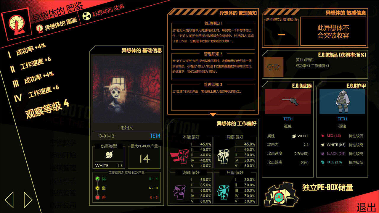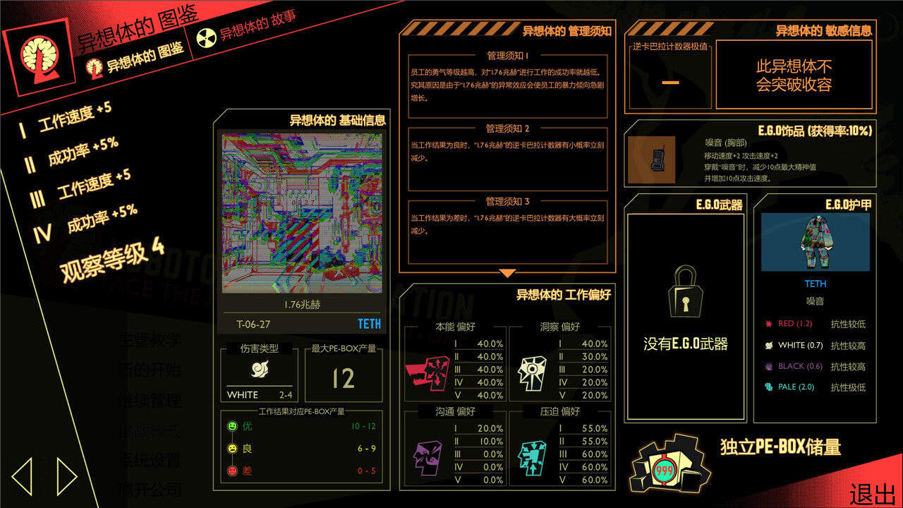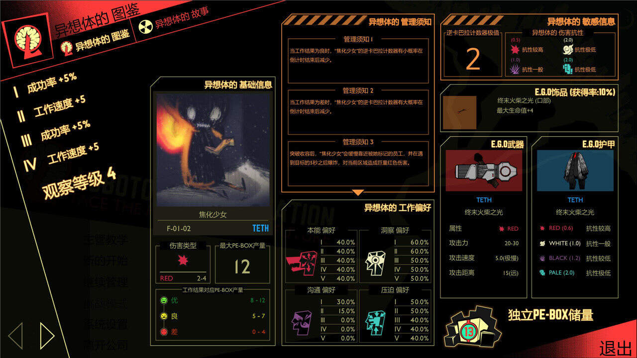 6、當“櫻下墓”吸收了一名員工之后,如果指派一名員工開始工作,那么“櫻下墓”的逆卡巴拉計數器將會恢復到最大值。同時,設施內所有的員工都會恢復生命值和精神值
