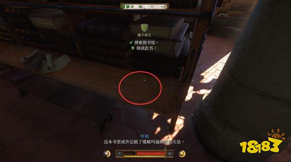 來到圖書館后,可以在下圖所示的位置找到對應的治療書籍(畫圈處)