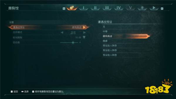 遭遇戰(zhàn)預(yù)設(shè)可以配置使用撕裂館自帶的敵人配置,從中等~施虐目前均為官方配置的難度,各個(gè)挑戰(zhàn)難度逐級(jí)遞增。