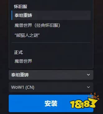 4、在左下角的“游戲版本與賬號”中選擇懷舊服—泰坦重鑄,并點(diǎn)擊安裝按鈕。