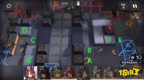 2.等待部署費用足夠在E點向上部署星熊,并在F點向左部署調香師。等待費用足夠在G點向右部署小羊。