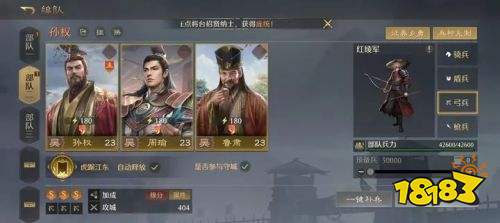 回復技能或智力加成技能:推薦攜帶【軍醫】或【智謀加持】,前者可以在戰斗中為隊友提供持續的兵力恢復,后者則可以提升全隊的智力屬性,增強周瑜和孫權的輸出能力。