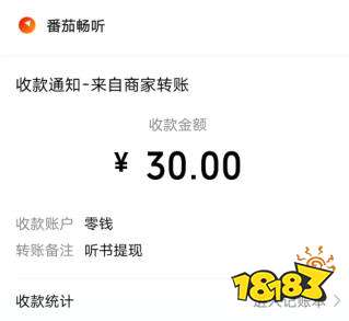5.當我們在番茄暢聽小說的收益達到一元,即可申請提現。新用戶可以直接提現,到用戶需要聽書5分鐘,也是非常簡單的。同時還支持15元和30元的無門檻提現,可以提現到微信或者支付寶,三分鐘左右就能到賬。