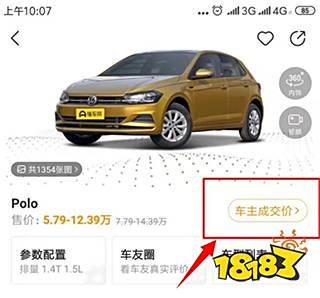2、進入后,選擇所要查看的車型。然后點擊右上角“車主成交價”進入。