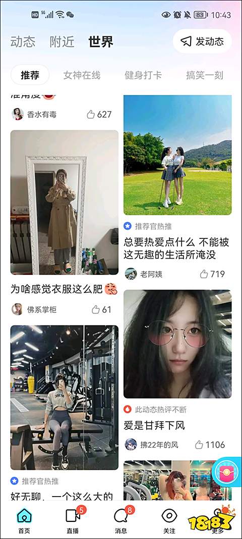 4、除了簡單的查看附近人之外,你還可以查看動(dòng)態(tài),在動(dòng)態(tài)中你能夠發(fā)現(xiàn)更多有趣或者趣味相同的女生。