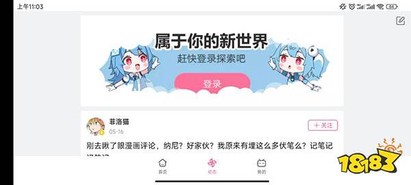 5、在動態頁面,為你帶來最新的動態資訊,你也可以自己創建動態并分享;