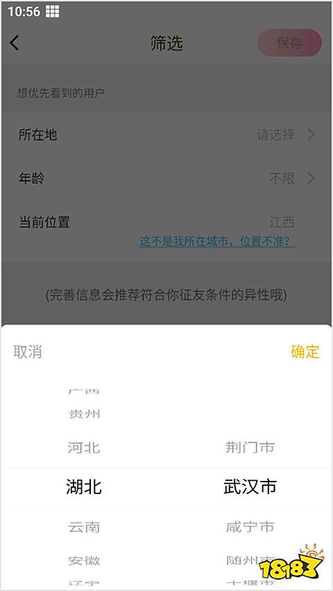 2、選擇所在地,點(diǎn)擊保存即可