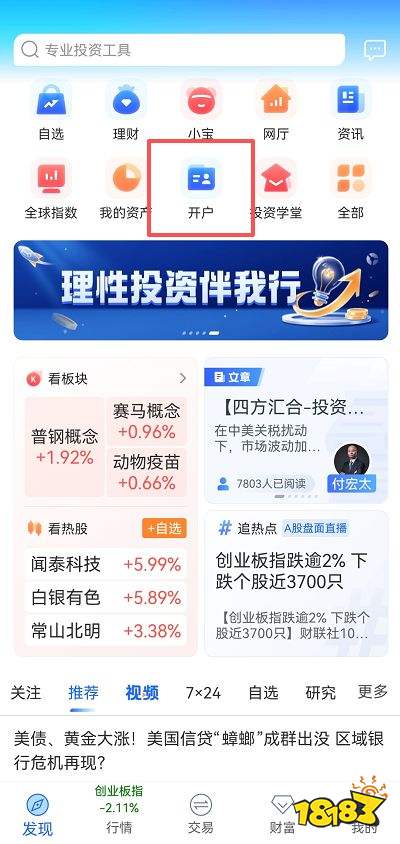 打開APP,點擊首頁“一鍵開戶”按鈕。