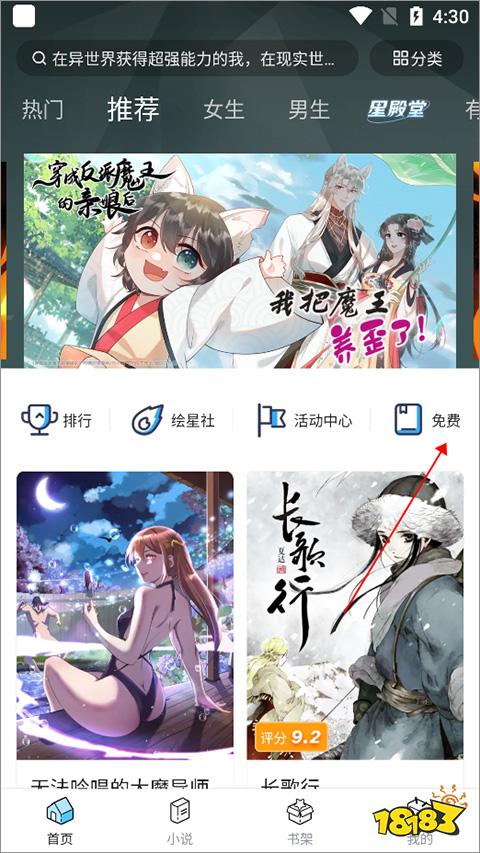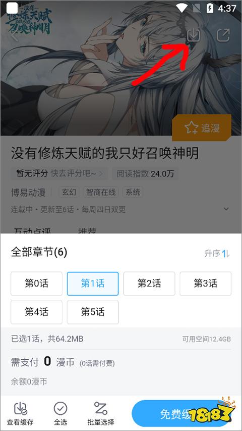 除了部分正版漫畫因版權問題只能在線瀏覽,不提供緩存外,其作免費漫畫可以進行緩存,用戶可以進入應用首頁中點擊【免費】